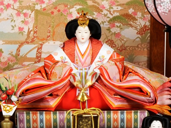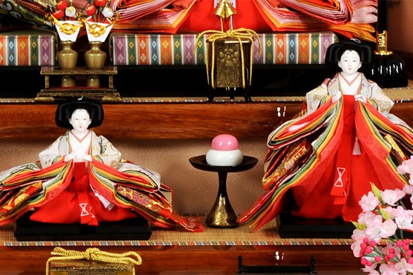 親御様、お子様、縁者様の健康と発展を願いながら職人が丁寧に仕上げた雛人形飾り/雛人形が初節句のお祝いにはなを添えます。