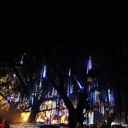 - ★ Meteor Shower Effect with Romantic Aesthetic: Led meteor shower lights, the light of every bulb turns on and out one by one in sequence and quickly just like meteor shower or falling snow in the night sky, multi-colored, very beautiful. It can be used as one, or be connected (as much as five string lights).