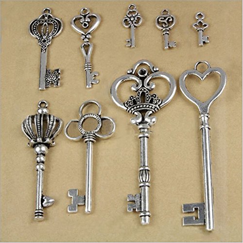 Metal Accessories,tibetan Silver Antique Keys Hanging Pendant Beads ,9 Styles, Each 1piece