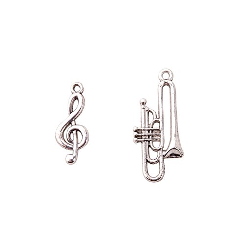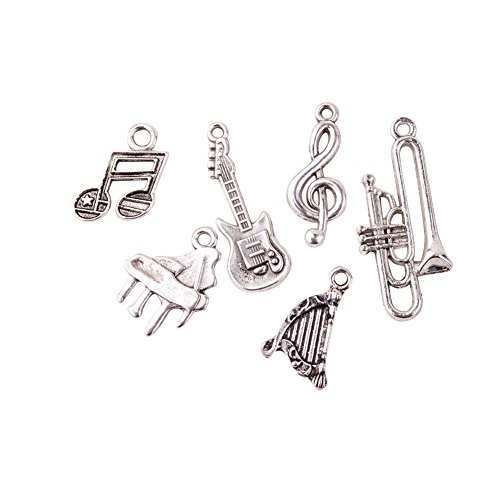 Pandahall 5 Sets(6pcs/set) Musical Instruments Antique Silver Tibetan Style Alloy Pendants, Lead Free