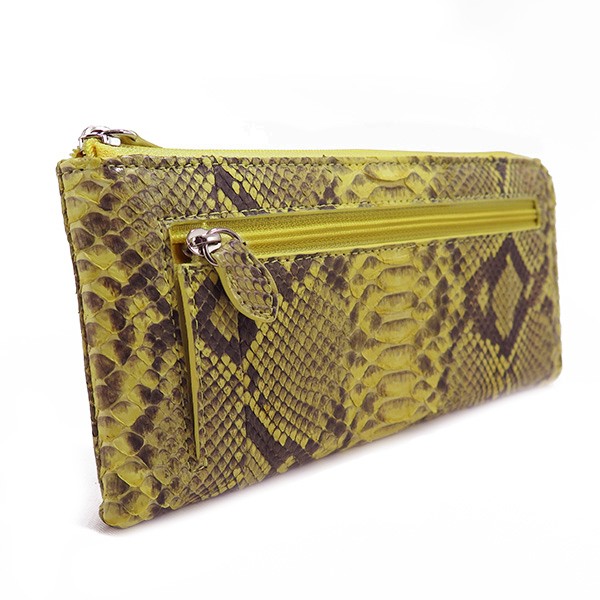 ロダニア RODANIA ヘビ柄 長財布 ロングウォレット  商品仕様:(約)H9.5×W21×D3cm パイソンレザー 開閉:ファスナー、外側:ファスナーポケット(小銭入れ)×1、内側:札入れ×1、ポケット×2、カード入れ×14、カラー:イエロー ボックス