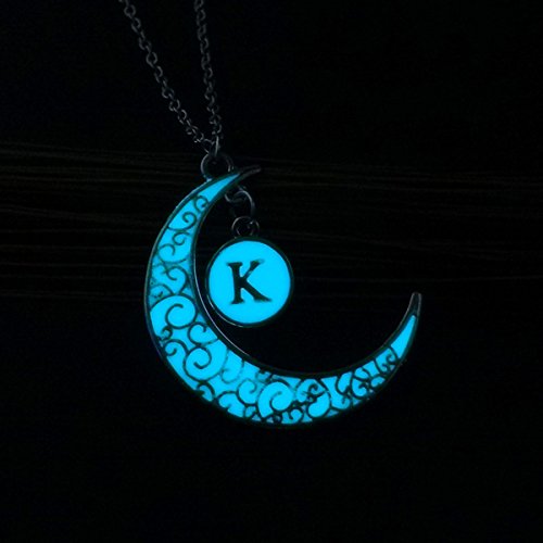 -. Title : Linsh Initial Necklace Glow in Dark Hollow Out Carved Moon K Letter Pendant Necklace Color: Silver