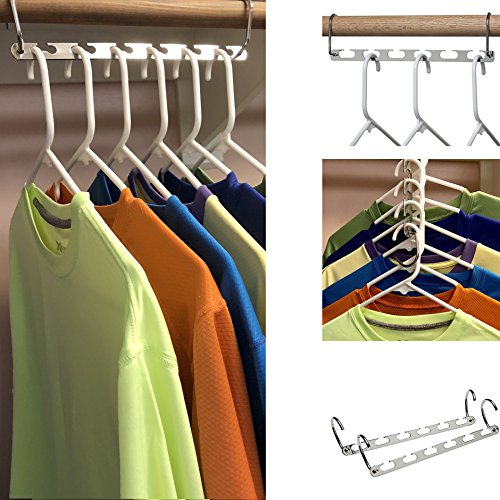 Product Description This Option is for: 4 pcs. Keeps clothes organized and wrinkle free. Use both hooks to hang clothes horizontally. Remove hook to drop wonder hanger to vertical position. Increase your closet space instantly. You can use it with plastic, wire or wooden hangers. 0