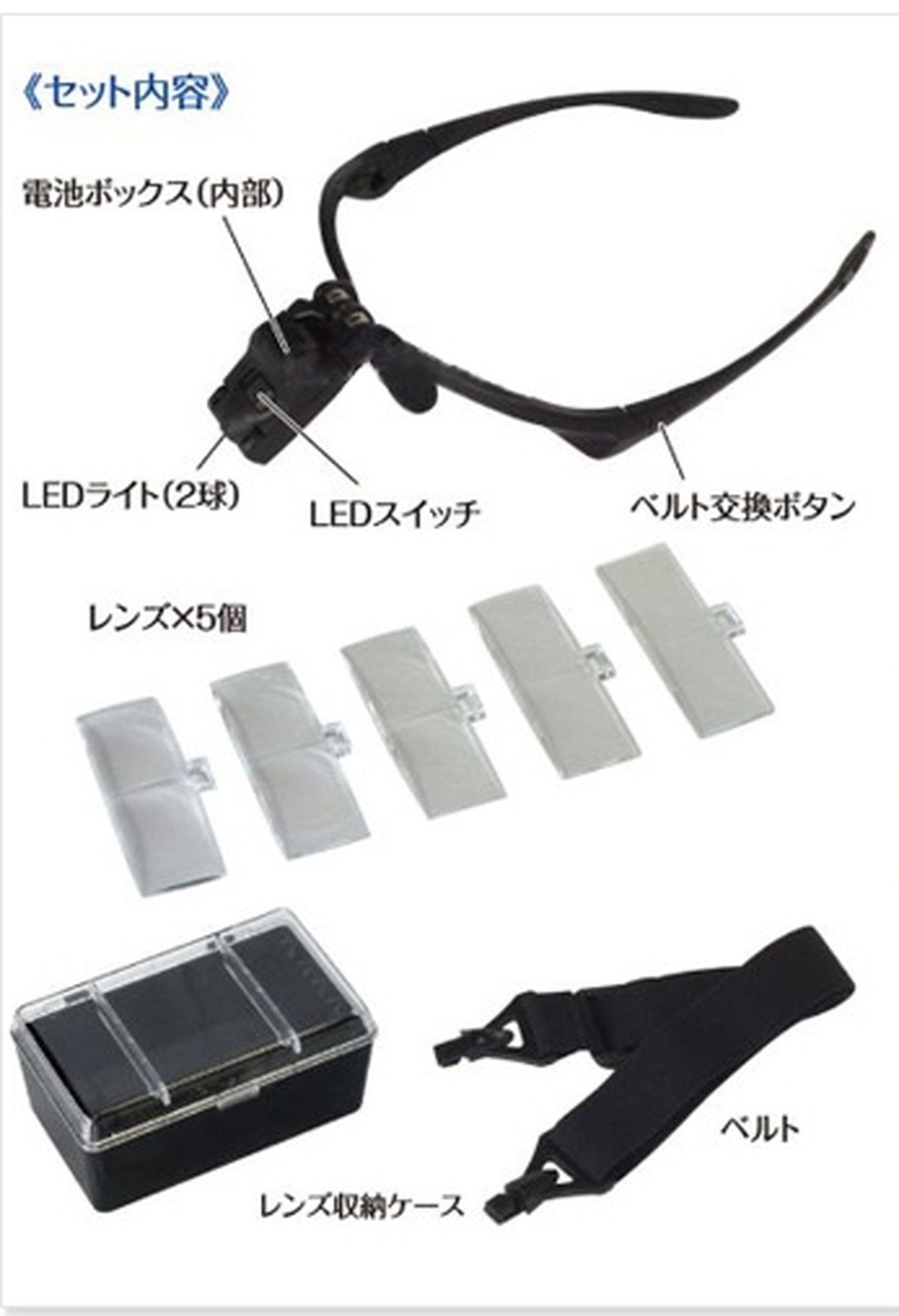 LED light glasses type loupe head magnifier lens 5 pieces with cleaning cloth