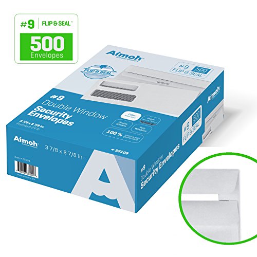 #9 FLIP & SEAL Double Window Security Business Mailing Envelopes for Invoices, Statements & Legal Documents, Self-Sealing Adhesive Seal, Security Tinted, Size 3-7/8 x 8-7/8 - 24 LB 500 Count (30109)