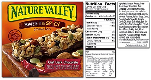 -. Title : Nature Valley, Sweet & Spicy, Chili Dark Chocolate, Granola Bars, 6 Count (1.24oz Bars) 7.44oz Box (Pack of 4)