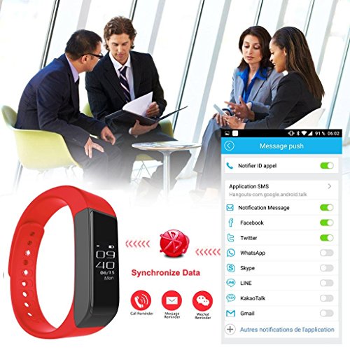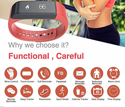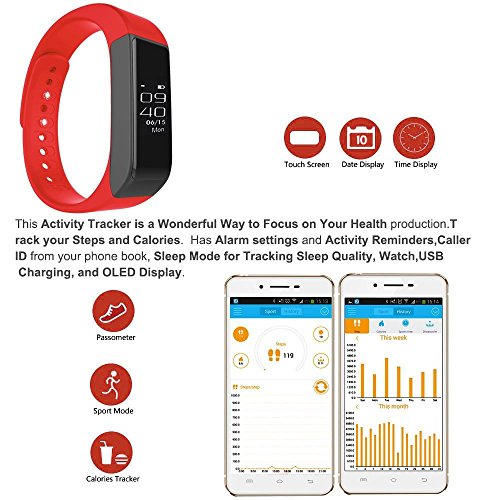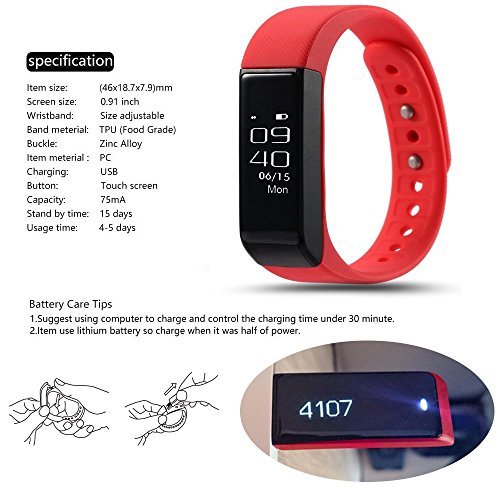 -. Feature : Pedometer smart watch 0.91 inch OLED display and Low-energy consumption Time Display and 3D Sensor function / Smart bracelet IP65 water resistant grade: You cann't wear I5 plus bracelet to swim, it won't missed any important message or calls; Ultra-light weight; Super thin (8.6mm); Adjustable snap strap design to fit your wrist. / Pedometer Sync sport data with apple and android device: Go to App store or paly store, download this APK: "Zeroner health"and install it. Compatibility-iOS system: Must be iOS 8.0 or later, Bluetooth 4.0; Such as: iPhone 4S /5/6, iPod touch 5, etc.Android system: Must be Android 4.3 or higher, Bluetooth 4.0; Such as: Samsung S4, Note 3,etc. / Lithium ion polymer battery: 75mAH, Standby time: 4~5 days Two control mode: Touch Screen control, Gesture control / USB design for charging, PC Machine, TPU strap Call Notification: show caller ID when receive a call SMS Notification: show contacts and content of SMS of your smart phone; Ideal gift for friends and family for birthday, Valentine's Day, back to school gift, etc.