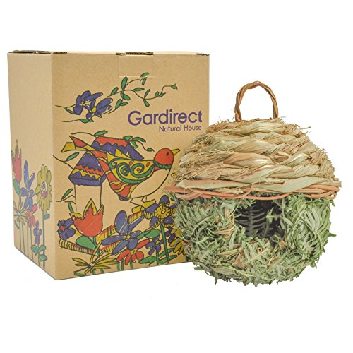 Gardirect Natural Birdhouse, Wild Bird Nest, Reed Weave Natural Roosting Pocket