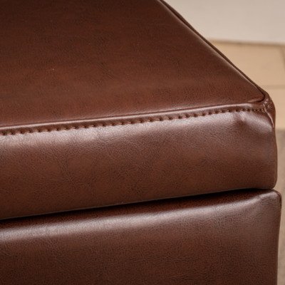 -. Title : Leather Storage Bench Ottoman for Bedroom-Brown/British Tan
