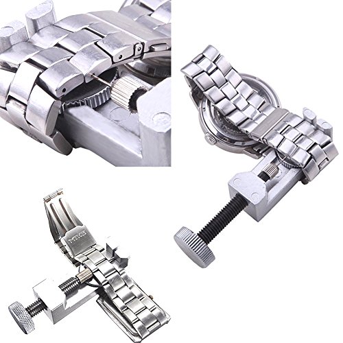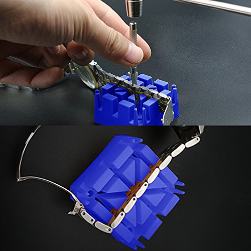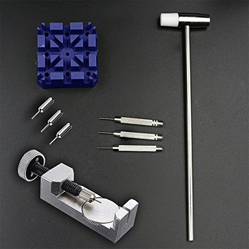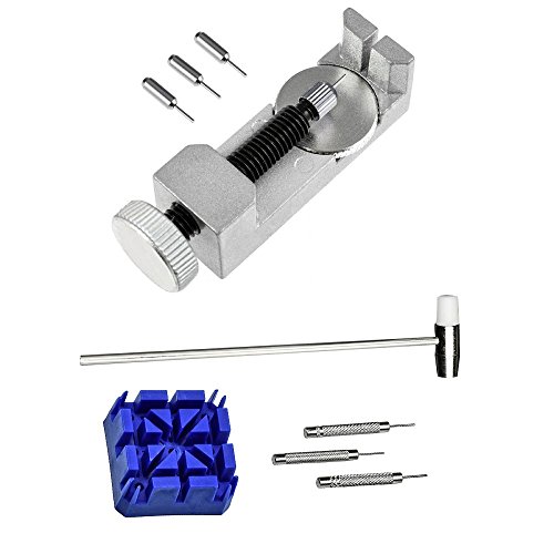 Watch Repair Kit,Watchband Tool, Watch Band Strap Link Pin Remover Repair Tool Kit 3 Extra Pins, 3 Pin Punches, 1 Watch Band Holder, 1 Dual Head Hammer