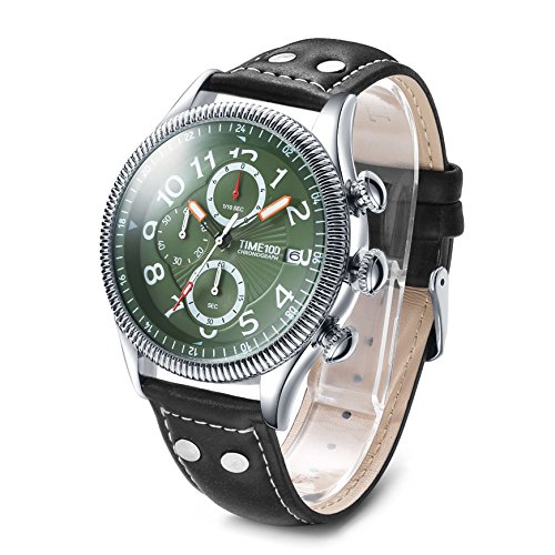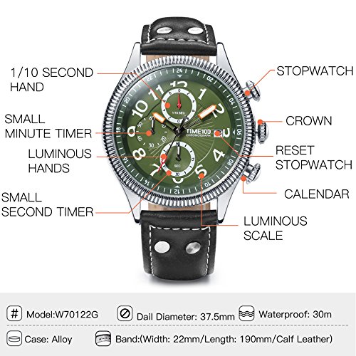 원본상품명: Time100 腕時計 メンズ 多機能 レ?シング ストップウォッチ 日付 夜光インデックス W70122G.01A (グリ?ン)