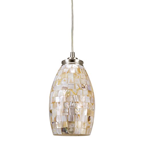 Pictures cannot do this light justice! Features hand-crafted intricate mosaic shell glass. No two pieces are identical. Brushed nickel finish completes the clean, modern look