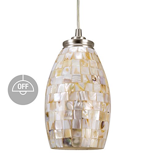 Pictures can't do this pendant light justice. It looks much better in person. The Coast Contemporary Mini Pendant light is one of our most vibrant fixtures. It features an unique and intricate hand-crafted mosaic shell design on the shade that highlights beautiful peach and brown hues that exude a beach-feel. Polished off with a Brushed Nickel finish, the ceiling light provides a refreshing tone and would look great over any kitchen counter or bar area.