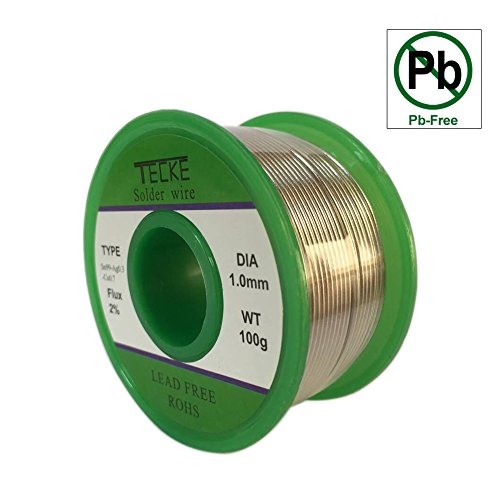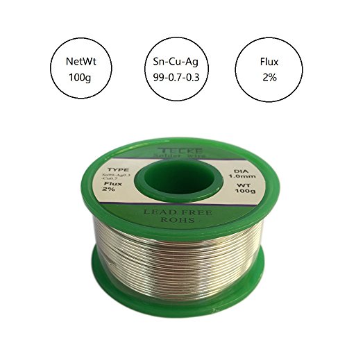 TECKE Lead Free Solder Wire with rosin core(Sn99%-Ag0.3%-Cu0.7%, flux 2.0% ), Net Weight 0.22lb(100g) (1.0)