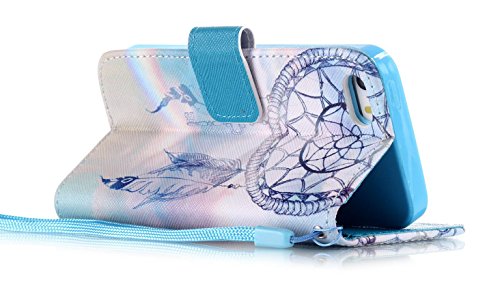 iPhone 5 5S Case AIYZE PU Leather Color Print with Wallet Function / Stand / Short Lanyard / Credit Card Holder / Magnetic Snap Front and Back Folio Cover ( Dreamcatcher )