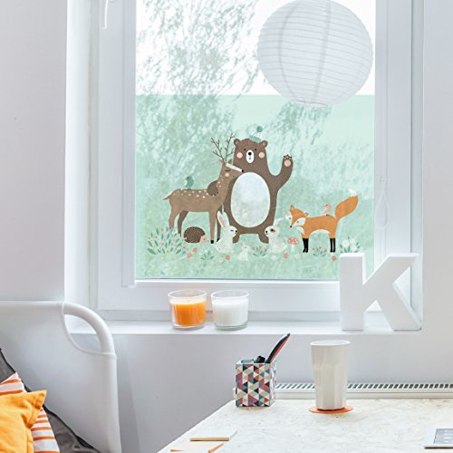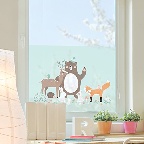 (PPS. Imaging)/Kids' Furniture Room Decor/Room Decor/DIRECT FROM USA/Window Mural Forest Friends with forest animals blue window sticker window film window tattoo g...