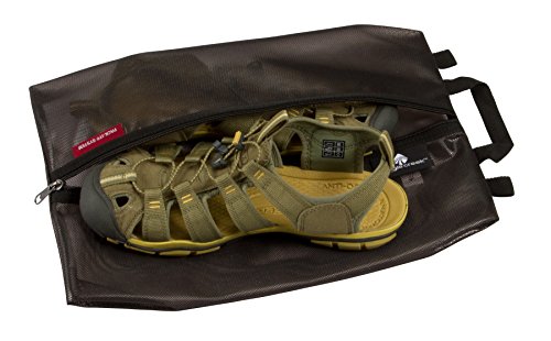 Use the shoe sac to protect clean clothes from dirty shoes inside any travel bag; it's constructed of water-repellent link seal mesh for dirt-resistance and easy visibility, with full-length front zipper to access to shoes (fits up to men's size 13), and carry handle