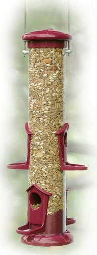 Woodlink NATUBE8 Audubon 4 Port Mixed Seed Tube Feeder, Red Apple
