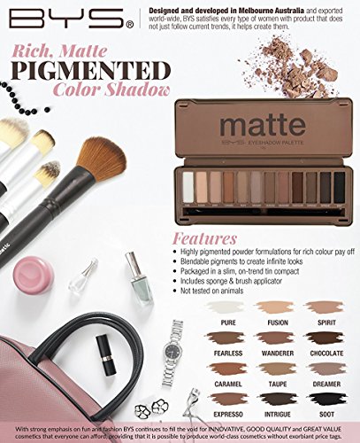 BYS 12 Shade Matte Eyeshadow Palette Tin Collection with Mirror, Double Ended Applicator and Blender, Nude and Smoke