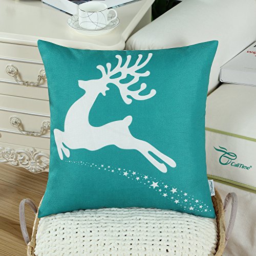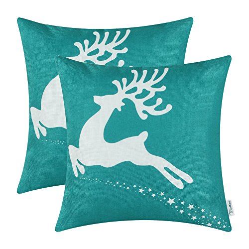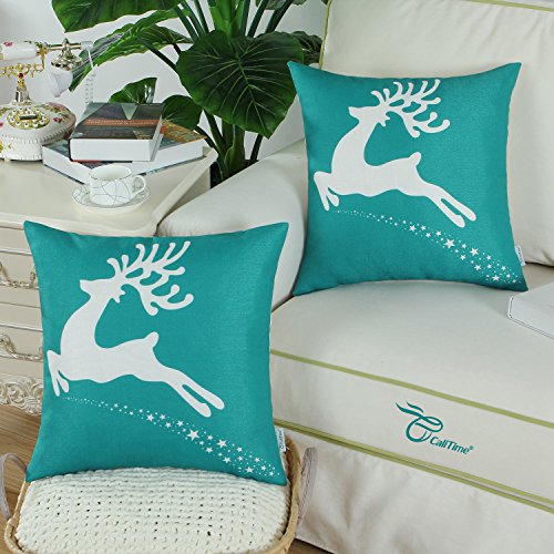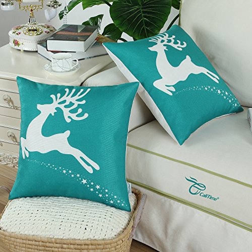 Pack of 2 CaliTime Throw Pillow Covers 18 X 18 Inches, Christmas Holiday Reindeer, Teal
