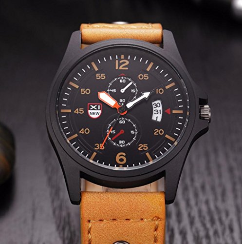 -. Title : Hemlock Round Men's Military Sport Calendar Watches PU Leather Band Quartz Wrist Watches Khaki