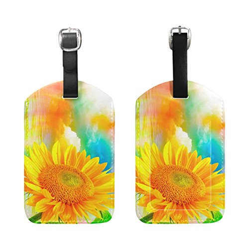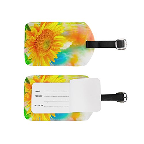 (YZGO)/Accessories/Luggage, Bags Travel/DIRECT FROM USA/YZGO Bright Color Sunflower PU Leather Luggage Tags Bag Label Tag Travel Accessories for Suitcase