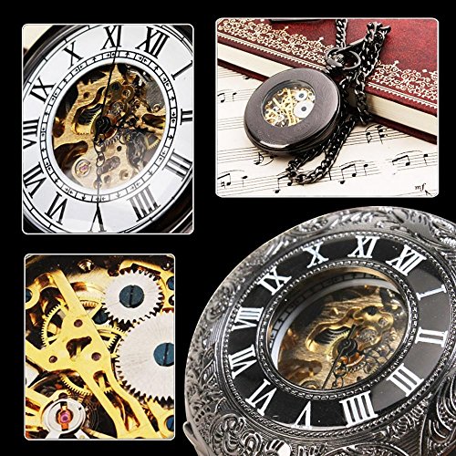 -. Title : ALIENWOLF Mens Antique Mechanical Pocket Watch with Chain and Case F030