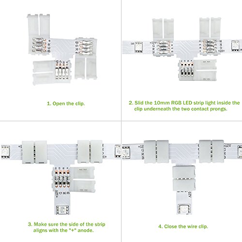 (Please peel off silicon on the surface around soldering line area when install waterproof strips) Package includes: * 10x 4 Pin 10mm connector for SMD5050 RGB multi-color LED strip lights