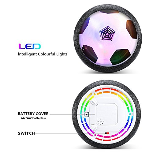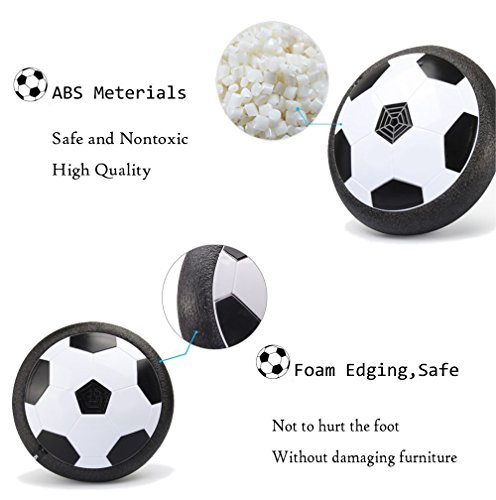 Studio : MIJOYEE Publisher : MIJOYEE Binding : Toy Product Description You can turn any floor into an air hockey/soccer surface, perfectly at home on wood, linoleum, polished concrete, and even low-pile carpet. Allowing you and your kids to use it in the multiplayer game. With the modest size of 7.5" which is similar to Size 4 soccer, Neither too big nor too little. Develop your child's interests, and enhance child's curiosity, it's really perfect for outdoor and indoor games, your kids can have an excellent group game. This air power soccer ball with foam edging, flexible, safe and not hurt the foot, the soft cushion of foam surrounding the edge of the disc protects furniture and wall from damage furniture and walls while allowing for great rebounding! Specification : Recommended Age:3 - 13 years Color: Black Material: Non-toxic plastic Product size:7.20*7.20*2.40in Battery: 4 * AA batteries (Not included) 0