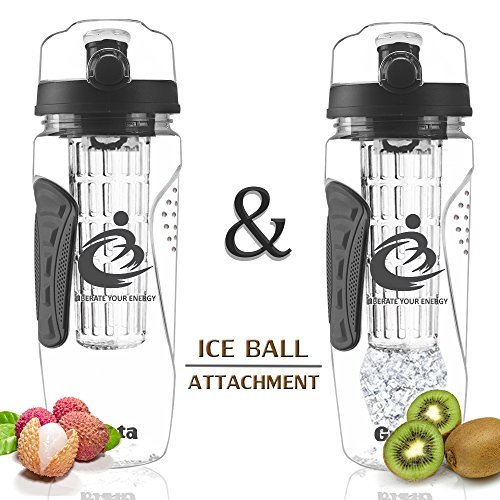 ✔ ICE GELL BALL ATTACHED: The removable ice ball Cooling your water for hours without filling ice cubes in! No trouble in making ice cubes any more. That means you can enjoy cold fruit water wherever you go, like yoga, gym, running, hiking, even when you are watching the Super Bowel on TV. It will helps you keep cool! (Remember to Freeze the ball before use)