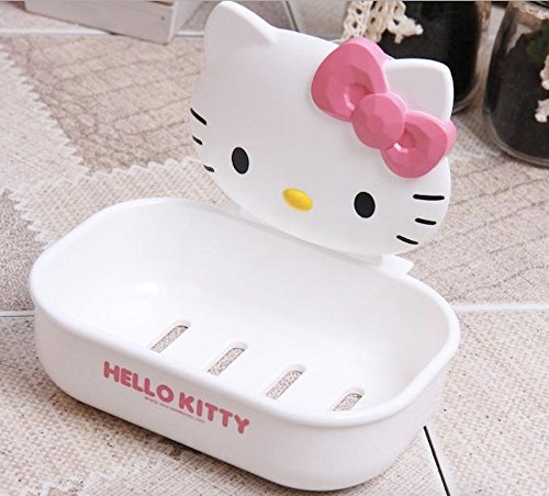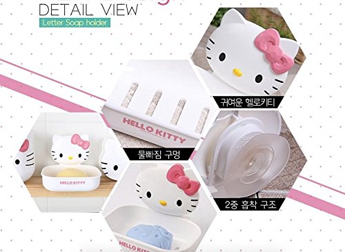- Cute Hello Kitty Soap Holder with Dual Structure Suction Cup (Attach to Bathroom Mirror or Wall)