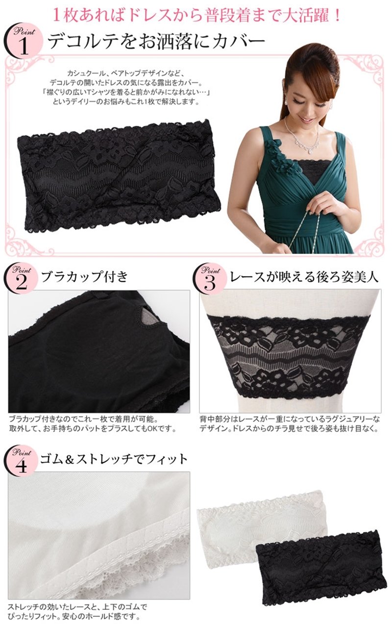GIRL Bare top bra inner tube top with lace cup bra-8 on elegant chest