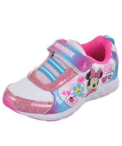 These Minnie Mouse light-up sneakers are sure to sweeten up her look! Minnie Mouse light-up sneakers Light-up design at side Elastic "laces" and hook-and-loop strap at vamp Grippy sole with cushioned insole Synthetic upper ImportedFeature