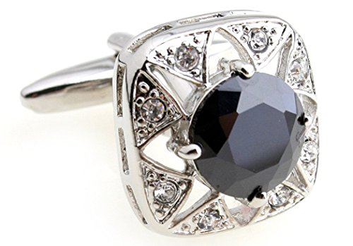 -. Feature : Black Crystal Square Round Cufflinks with a Presentation Gift Box / Arrives in hard-sided presentation box ready for gift giving. / 30 day, no reason needed return policy. / We make your french cuffs look good! / Microfiber polishing cloth included with set.