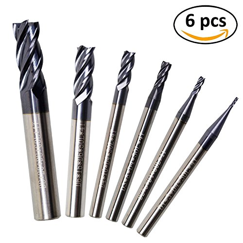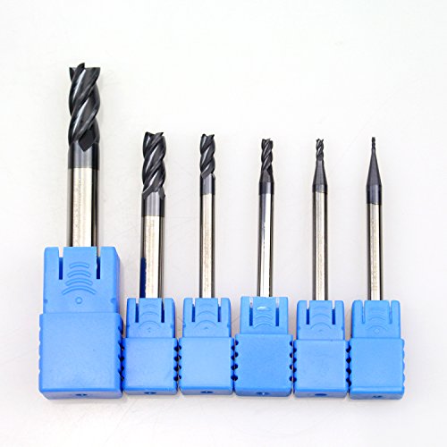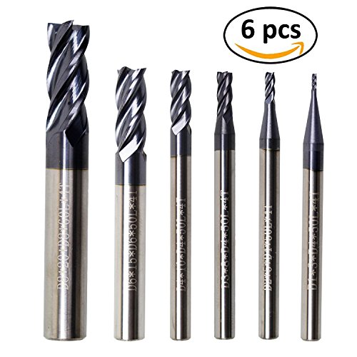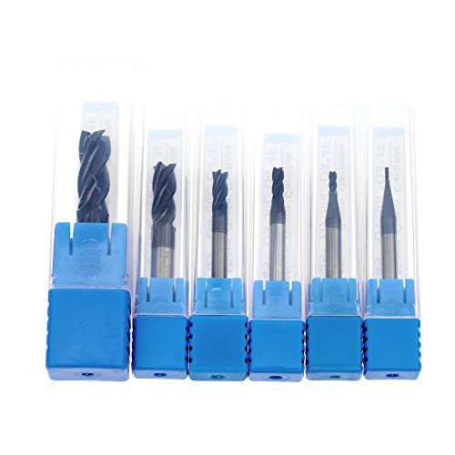 DYWISHKEY 1 2 3 4 6 8mm CNC Router Bits, Tungsten TiAlN Coated, HRC45, Engraving Cutting End Mill, 4 Flute Straight Shank Square Nose End Mill (6pcs)
