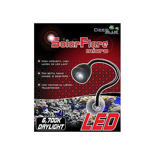 Deep Blue Professional - SolarFlare Micro Suction-mount Gooseneck LED 6700K Daylight. 3 Watt High-intensity single-head LED lamp with Gooseneck design and heavy-duty suction cup mount Great for most flat-sided desktop aquaria and fsh bowls. Also makes an excellent source of accent lighting for larger aquariums and terrariums. 3 Watt diode 6700K daylight