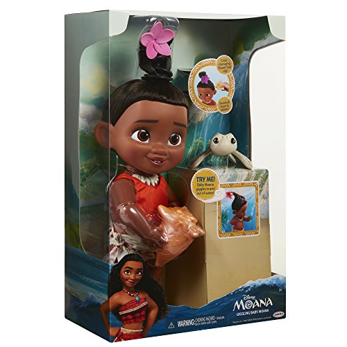 Moana has always had a special relationship with the ocean. Place young Moana in water and hear her adorable movie giggles and sounds and help her hold her seashell and turtle friend. 2 AAA Required(included). For ages 3+Feature
