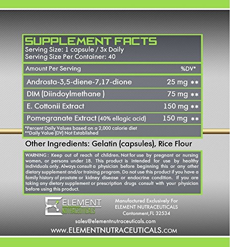 -. Feature : ArimaGold 120 ct / 40 day supply of 75 mg a day of (Androsta-3,5-diene-7,17-dione) / 120 serving sested 3 times daily for maximum results / 1 capsule equals: 25mg Androsta-3,5-diene-7,17-dione .. 75mg DIM..150mg E Cottonii Extract.. 150mg Ellagic Acid