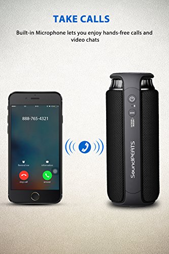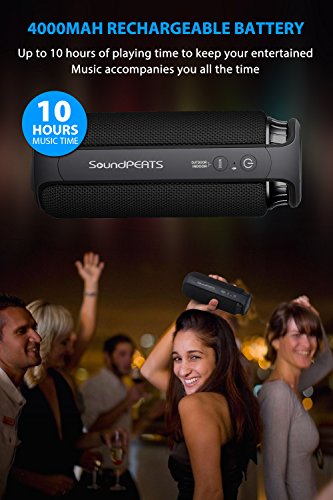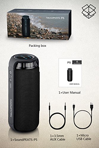 -. Binding : Electronics -. Brand : SoundPEATS -. Color : Black -. EAN : 0605757388113 -. Feature : 【360 degree directional premium stereo sound】: ♪♫Cylindrical design with dual opposite facing speakers offers a clear, 360 degree sound from all directions. Enjoy HD stereo sound with a impressive volume whether you're lounging around the house, partying, walking around, camping, hiking, or even biking. / 【Unique touch and rotate contro】: ♪♫The built-in touchscreen and volume dial make switching between songs and changing the volume easy. Simply swipe across the center display with your finger to change tracks, or rotate the dial to adjust the volume of your music. / 【Long Lasting Usage】:♪♫4000mAh battery capacity provides you with up to 10 hours of playtime. It also features a great built-in micro USB charging port, which can even be charged by a power bank at any time during an emergency. / 【Portable and Light Weight Design】:♪♫The speaker measures 7.48*3.07*2.95 cubic inches and weighs only 19.7 ounces, making it portable and easy to carry anytime and anywhere - especially when you are out bike riding, hanging out at the beach, camping, or even showering indoors. / 【Microphone and Unique indoor/outdoor mode】:♪♫Enable this function to use this Wireless Bluetooth Speaker as a speakerphone, so you can enjoy hands-free calling as well. Besides this, the uniquie mode choice, you can choose indoor or outdoor mode depend on your needs. -. IsEligibleForTradeIn : 1 -. Label : SoundPEATS -. Manufacturer : SoundPEATS -. MPN : SP_P5_Black -. PackageQuantity : 1 -. PartNumber : SP_P5_Black -. ProductGroup : CE -. ProductTypeName : PORTABLE_AUDIO -. Publisher : SoundPEATS -. Studio : SoundPEATS -. Title : SoundPEATS Bluetooth Speaker 360 Degree Surround Sound Stereo Portable Speakers 24W Wireless Speakers with 10 Hours Play Time, Built-in Mic, Touch Control, Strong Bass, Bluetooth 4.1, Dual 12W Drivers -. UPC : 605757388113
