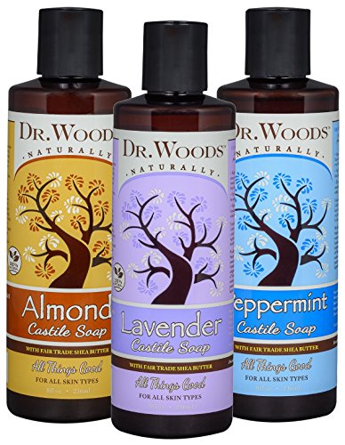 Dr. Woods Relaxing Soothing Pure Liquid Castile Soap with Moisturizing Organic Shea Butter Variety (3 Assorted 8 Ounce Bottles)