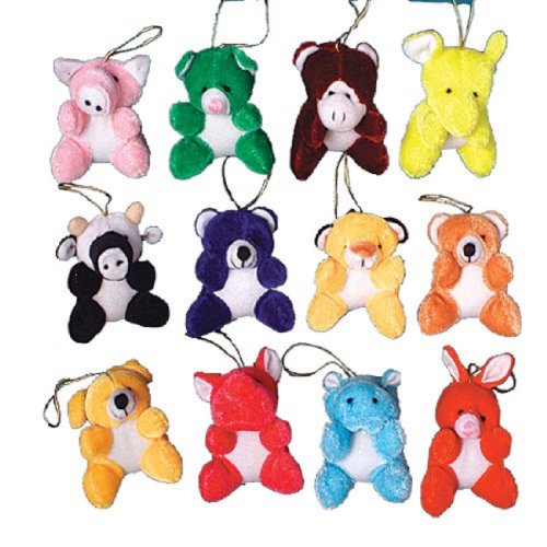 -. Feature : 12 Hanging Animals / Size: 2.5" / Hanging Loop Stuffed Animal Design / Assorted: Pig, Elephant, Bear & Rabbit / Made Of Soft Plush With Hanging Loop