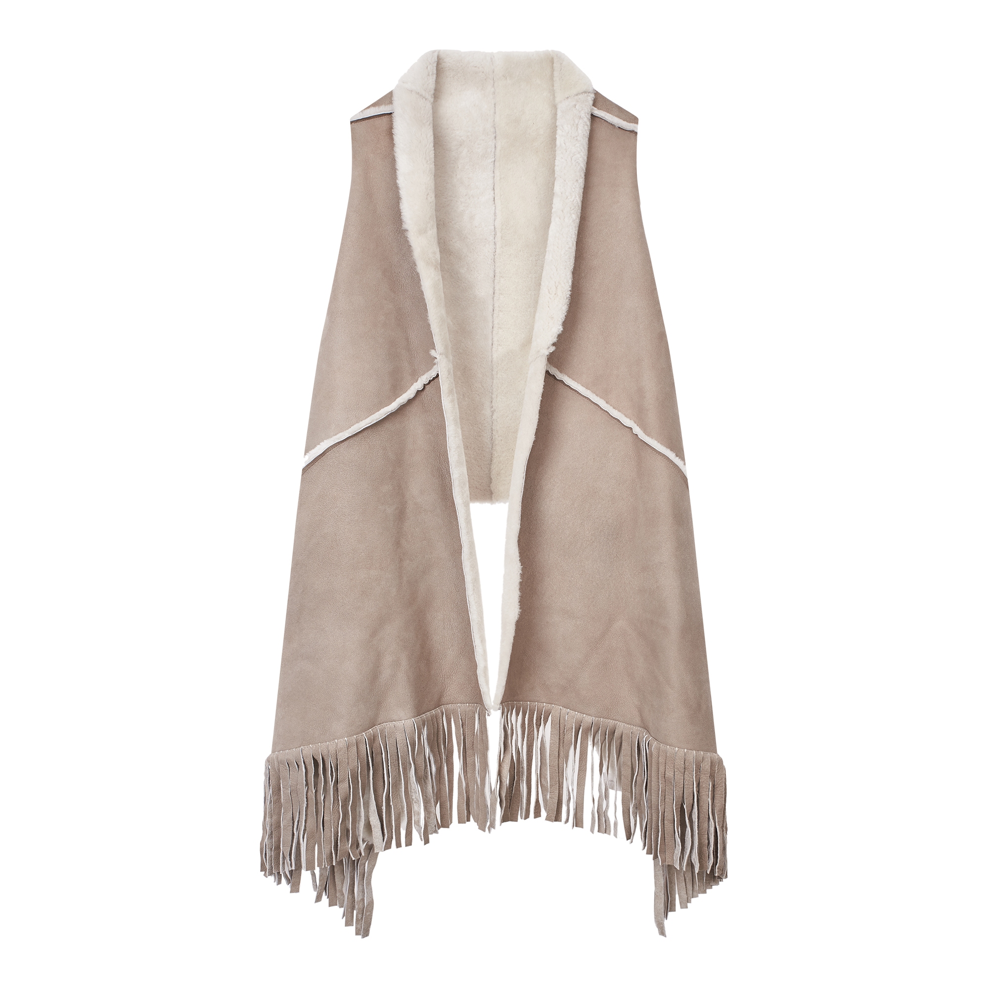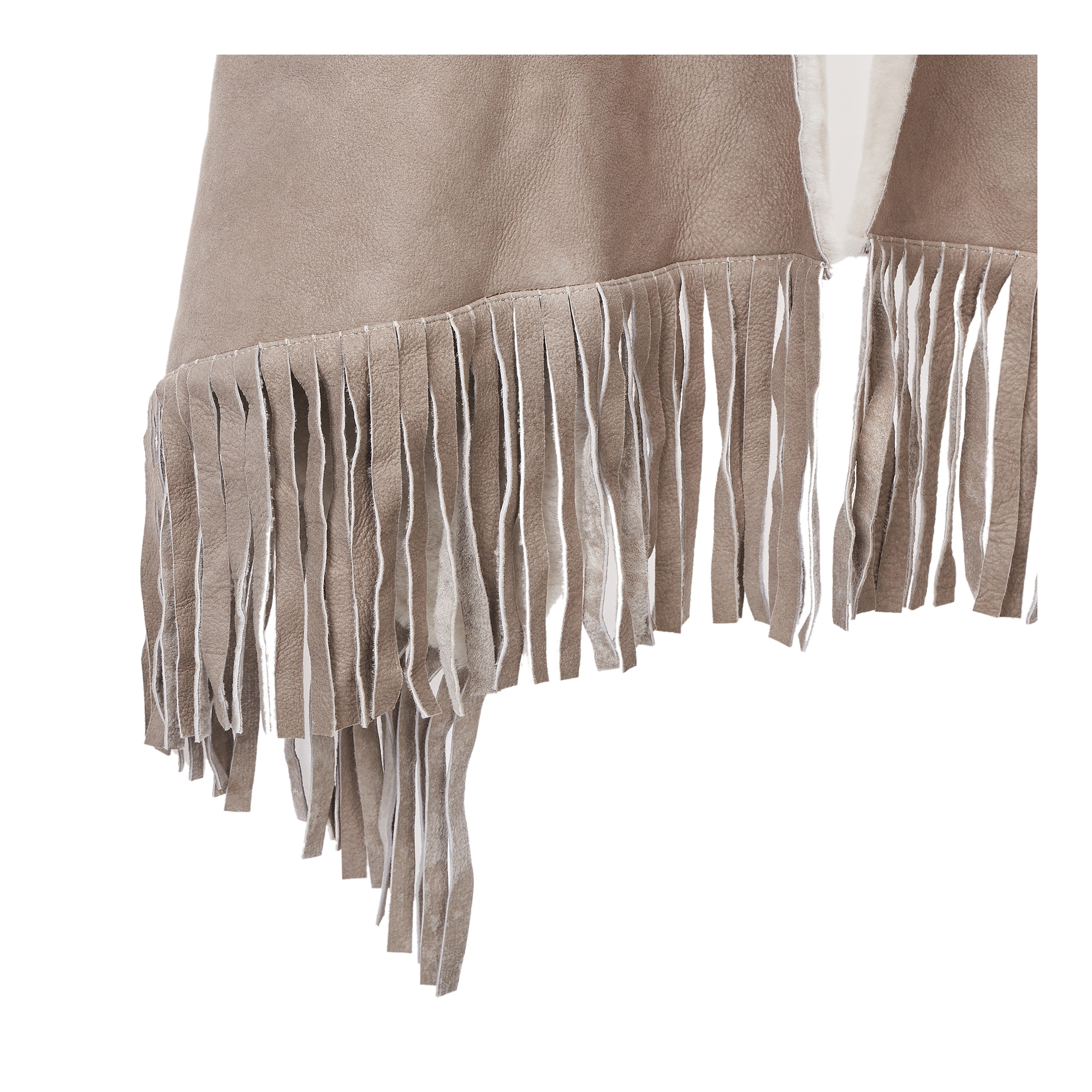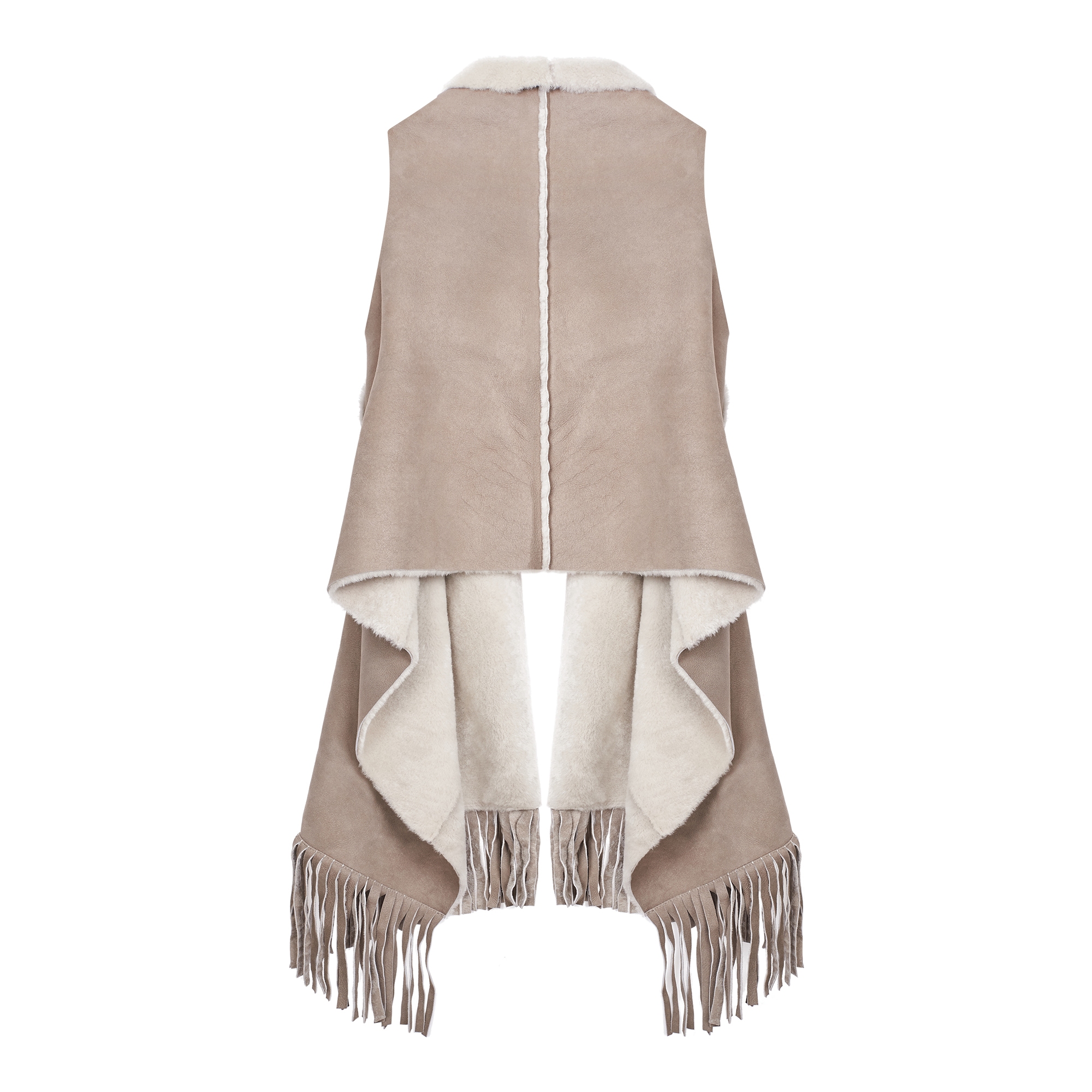 컬렉션 : 2017 Fall/Winter 디자인 포인트 :- 프린지 장식 디테일이 돋보이는 트렌디한 무드의 무스탕 베스트- 양털 소재가 포근하고 따듯한 느낌을 주는 디자인- 다양한 룩에 활용도 높은 포인트 아이템 스타일링 추천 :베이직한 니트웨어 혹은 원피스 등에 트렌디한 아우터로 스타일링 할 수 있음
