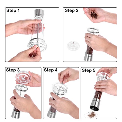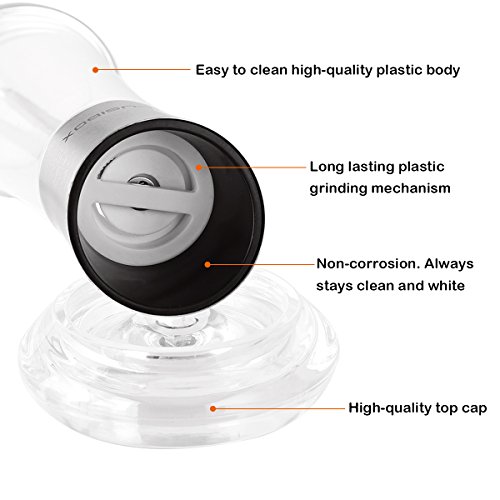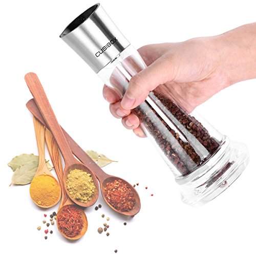 Studio : CUSIBOX Publisher : CUSIBOX Product Description Features: CUSIBOX Pepper and Salt Mills are formed in a traditional turned styling but with a modern twist-they're made from clear acrylic. Therefore, it can quickly view the contents and choose the salt or pepper. It is available in a range of sizes, make exceptional gifts individually or as a set. Adjustable Coarseness Turning the adjustable knob at the top of the grinder and then you will get as much of pepper or salt as you want in a split second. Clear Acrylic Container The grinder is made of high-quality carbon steel, designed with clear acrylic. It is easy for you to fill and view how much the spice in the container. Note: Product does not come with salt or pepper included. Package Includes 1 x CUSIBOX CUSIBOX Peppercorn Grinder 1 x User Manual