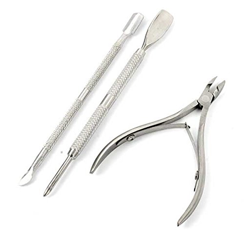 -. Feature : Chiropody Ingrown Toenail Clipper Nipper Podiatry Podiatrist Kit / Material: Stainless Steel / Color: Silver / Weight(approx): 81g / Item Includes: 1 x Large Size Cuticle Nail Pusher, 1 x Small Size Cuticle Nail Pusher, 1 x Cuticle Nipper Cutter
