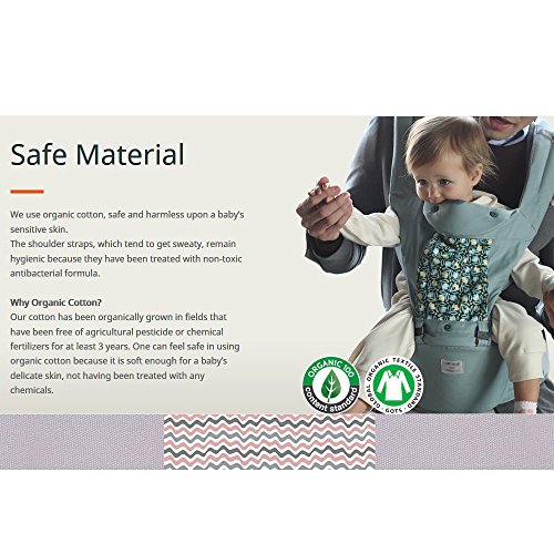 -. Feature : Stella Organic Cotton Baby Hip seat. / Opening Type Front Cover, Excellent Ventilation effect. / Collaboration with internationally renowned designer / Reinforcing Back Support. (TPU band)