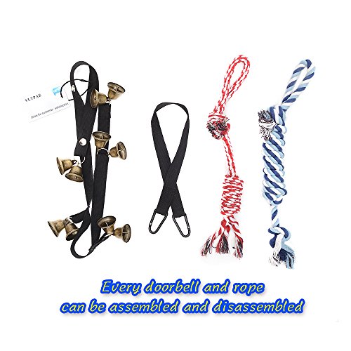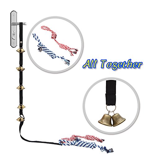 Your Furry friend want to go outside? Hang the dog doorbell on the corresponding door,let them to make the doorbell ring.The clear sound of doorbell will convey their will.Easy for training,two dog ropes help training. ?Package included: ??? 1* Dog doorbell ??? 2* Dog ropes ??? 1* Connection string 0 |