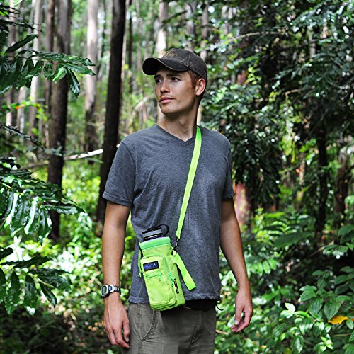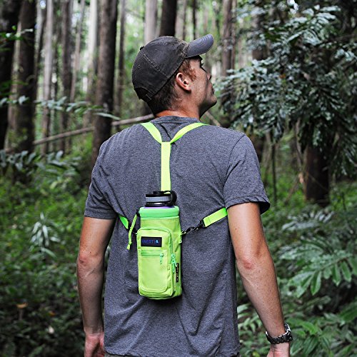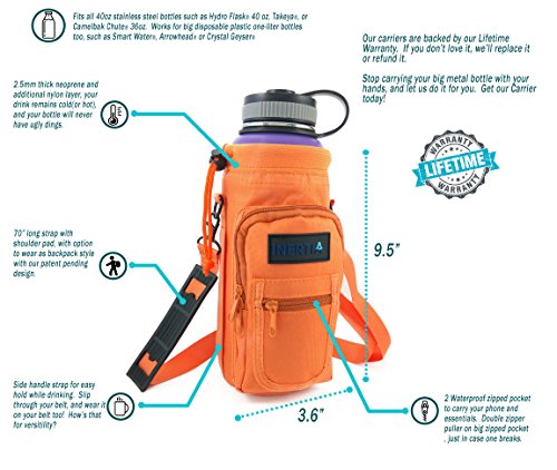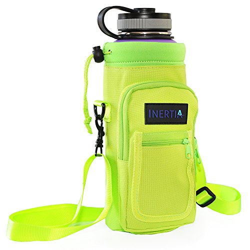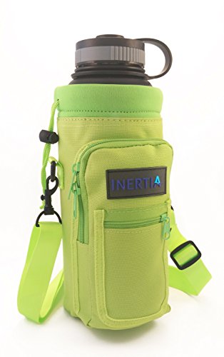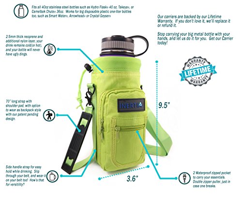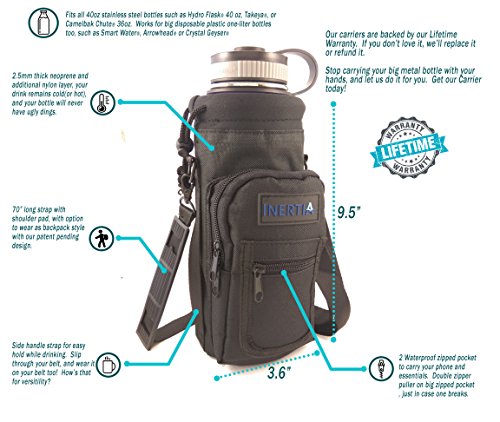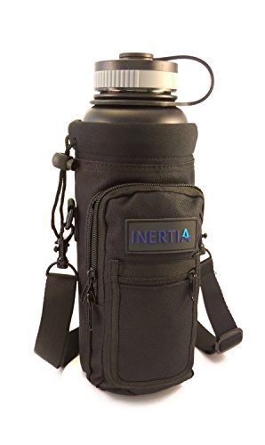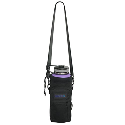 Studio : Inertia Gear Publisher : Inertia Gear Binding : Misc. Product Description Do you miss your favorite stainless steel water bottle when you are out? Because you didn't want to hold it in your hands, or you're afraid of losing it, dropping it, or damaging it? Our high quality Water Bottle Pouch is designed so that you can carry your favorite drink with you everywhere. Carry it on your side, or on your back, or on your wrist with our patent pending strap design. Free your hands and mind from holding and thinking about your bottle. Perfect for light hiking, camping, walking, jogging, playing with kids at playgrounds, shopping, events, concerts, games, festivals. Designed to fit large water bottles, such as Hydro Flask 40 oz or equivalents, Nalgene Wide Mouth Bottles, Yeti 36oz Ramblers, Camelbak Chute, or up to 1.5 liter disposable bottles such as Smart Water, Arrowhead or Cyrstal Geyser. World's first bottle carrier that can be worn backpack style with our Patent Pending Strap System Adjustable extra long 60 inch premium strap fits everyone. Thick Neoprene shell protects your bottle from scratches, and insulates to keep your drink warm or cold. High quality metal D-Rings and buckles to last years. Large Waterproof pocket (3.74" x 6.89") fits your large smartphone (iphone 6 plus compatible), wallet, keys and snacks. Small pocket for ID, cash and cards. Built to last double puller on the zipper pocket, just in case one wears out. Don't ever leave your favorite bottle home again! BUY THE LAST BOTTLE CARRIER YOU'LL EVER USE NOW!! 0