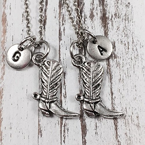 -. Title : Best friend necklace, friendship necklace, sister necklace, bff necklace, initial, cowboy boot necklace, cowgirl necklace, friend, initial