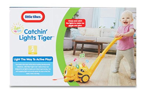 -. Binding : Toy -. Brand : Little Tikes -. Department : mens -. EAN : 0050743640926 -. Feature : This friendly Tiger push toy projects colorful lights on floor for baby to catch / Tiger glows and giggles when it rolls over the projected light / Projects 3 colored lights on floor / Provides hours of play for your little one / Includes 10+ songs and sounds -. IsAdultProduct : 0 -. Label : MGA Entertainment -. Manufacturer : MGA Entertainment -. Model : 640926 -. MPN : 640926 -. PackageQuantity : 1 -. PartNumber : 640926 -. ProductGroup : Toy -. ProductTypeName : TOYS_AND_GAMES -. Publisher : MGA Entertainment -. Studio : MGA Entertainment -. Title : Little Tikes Light 'n Go - Catchin' Lights Tiger -. UPC : 050743640926 -. Warranty : 90 day warranty against manufacturer defects