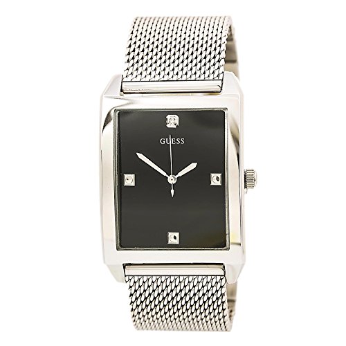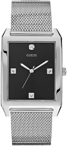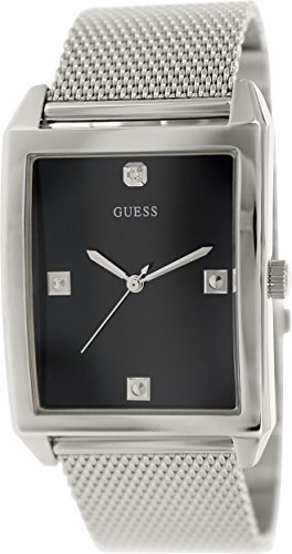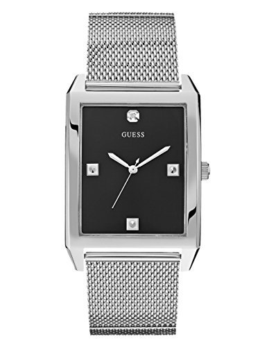 GUESS Men's U0279G1 Rectangular Silver-Tone Diamond-Accented Mesh Watch